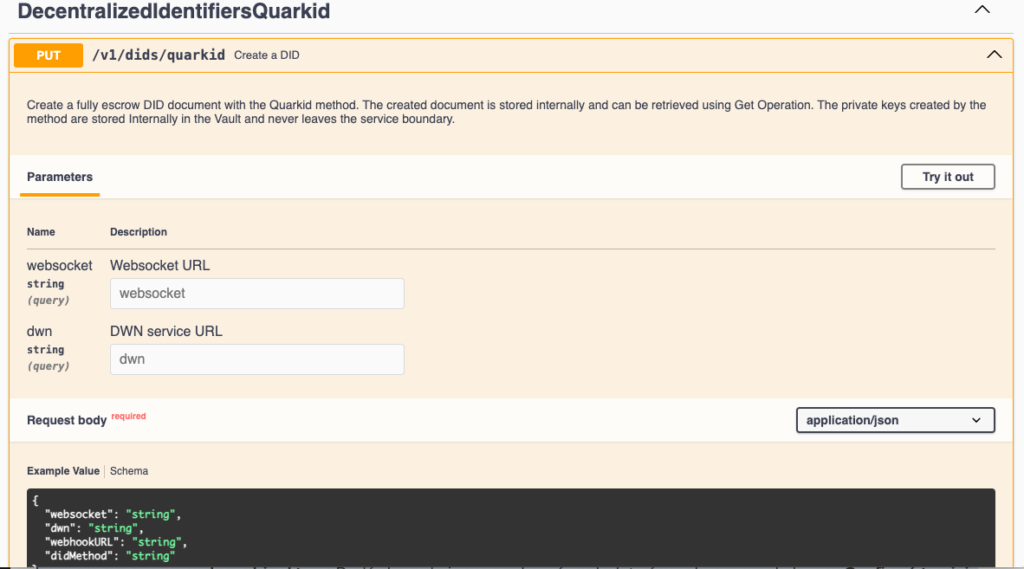 a. Dirígete a “DecentralizedIdentifiersQuarkID” / “Create a DID”.