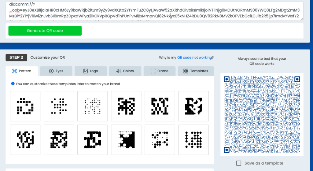 a. Dirígete a un creador de QR online y en “text” pega tu didcomm.